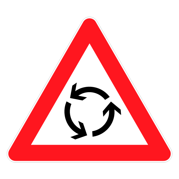 Označava blizinu raskrižja s uređenim kružnim prometom.