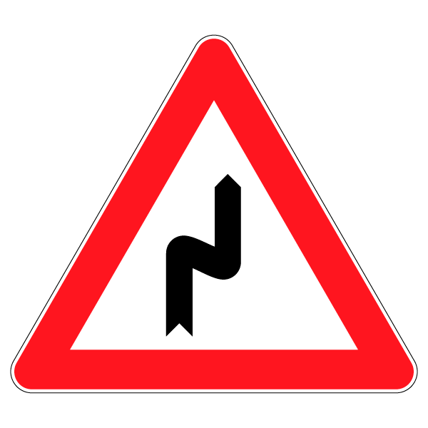 Označavaju približavanje zavoju ili zavojima koji su opasni po svojim osobinama ili zbog nedostatka horizontalne preglednosti. Označavaju približavanje zavoju ili zavojima koji su opasni po svojim osobinama ili zbog nedostatka horizontalne preglednosti. Simboli na znakovima mogu biti različiti, što ovisi o stvarnoj situaciji na cesti. Znak se, u pravilu, postavlja na cestama izvan naselja.