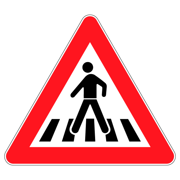 Označava blizinu mjesta na kojem se nalazi obilježen pješački prijelaz. Znak se izvodi najmanje s koeficijentom retrorefleksije razreda RA2. Znak se, u pravilu, postavlja na cestama izvan naselja.