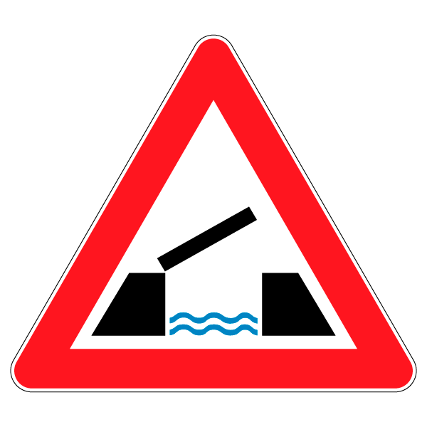 Označava blizinu mjesta na kojem cesta prelazi preko pokretnog mosta.