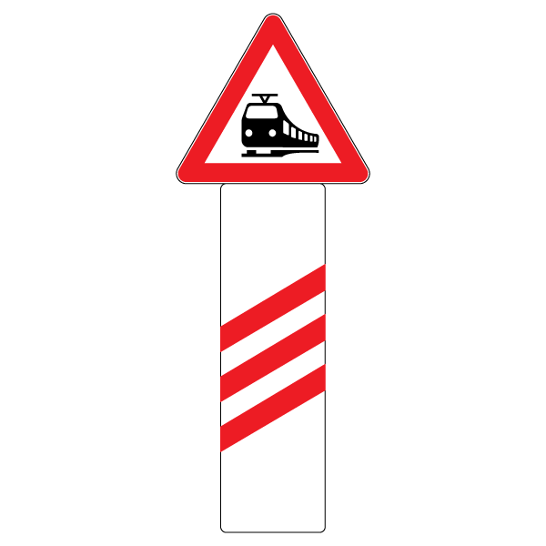 Označavaju udaljenost do cestovno-željezničkog prijelaza u istoj razini. Kod osiguranog prijelaza ceste preko željezničke pruge u istoj ravnini, s desne strane ceste, postavlja se znak A36, a kod nezaštićenog prijelaza znak A36-1. Znakovi A36, A36-1, A36-2, A36-3 i A36-4 postavljaju se s desne strane, a znakovi A36-5, A36-6, A36-7, A36-8 i A36-9 s lijeve strane kolnika. Ukoliko je okruženje takvo da onemogućuje postavljanje i pravovremeno uočavanje znakova A36-5, A36-6, A36-7, A36-8 i A36-9, isti se ne moraju postaviti. Znakovi se postavljaju tako da se znakovi A36, A36-1, A36-2, A36-5, A36-6 i A36-7 postavljaju na 240 m ispred mjesta križanja ceste i željezničke pruge u razini, znakovi A36-3 i A36-8 na 160 m, a znakovi A36-4 i A36-9 na 80 m ispred mjesta križanja ceste i željezničke pruge u razini tako da je niža strana kosih crta bliža kolniku. Znakovi A36-3, A36-4, A36-8 i A36-9 postavljaju se samostalno ili u kombinaciji sa znakovima opasnosti »prijelaz ceste preko željezničke pruge s branicima ili polubranicima« (A34) ili »prijelaz ceste preko željezničke pruge bez branika ili polubranika« (A35).