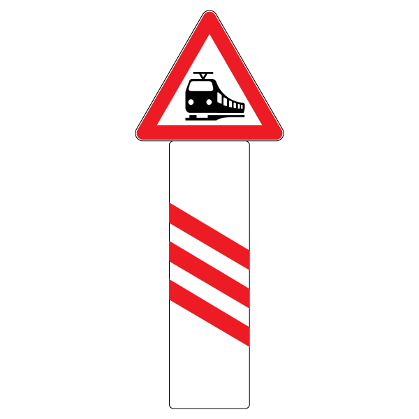 Označavaju udaljenost do cestovno-željezničkog prijelaza u istoj razini. Kod osiguranog prijelaza ceste preko željezničke pruge u istoj ravnini, s desne strane ceste, postavlja se znak A36, a kod nezaštićenog prijelaza znak A36-1. Znakovi A36, A36-1, A36-2, A36-3 i A36-4 postavljaju se s desne strane, a znakovi A36-5, A36-6, A36-7, A36-8 i A36-9 s lijeve strane kolnika. Ukoliko je okruženje takvo da onemogućuje postavljanje i pravovremeno uočavanje znakova A36-5, A36-6, A36-7, A36-8 i A36-9, isti se ne moraju postaviti. Znakovi se postavljaju tako da se znakovi A36, A36-1, A36-2, A36-5, A36-6 i A36-7 postavljaju na 240 m ispred mjesta križanja ceste i željezničke pruge u razini, znakovi A36-3 i A36-8 na 160 m, a znakovi A36-4 i A36-9 na 80 m ispred mjesta križanja ceste i željezničke pruge u razini tako da je niža strana kosih crta bliža kolniku. Znakovi A36-3, A36-4, A36-8 i A36-9 postavljaju se samostalno ili u kombinaciji sa znakovima opasnosti »prijelaz ceste preko željezničke pruge s branicima ili polubranicima« (A34) ili »prijelaz ceste preko željezničke pruge bez branika ili polubranika« (A35).