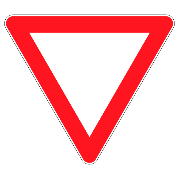 Označava raskrižje na kojem vozač mora dati prednost svim vozilima koja se kreću cestom na koju on nailazi. Znak ima oblik jednakostraničnog trokuta, čija je jedna stranica postavljena vodoravno, a vrh nasuprot njoj okrenut je prema dolje. Znak se izvodi najmanje s koeficijentom retrorefleksije razreda RA2. Znak mora biti postavljen na sporednu cestu neposredno prije njenog spajanja s cestom s prednošću prolaska. Znaku se dodaje isprekidana crta zaustavljanja (H15, H15-1 ili H15-2) koja označava mjesto na kolniku ispred kojeg se vozilo mora zaustaviti ako je potrebno propustit vozila ili ostale sudionike u prometu koji se kreću cestom s prednošću prolaska. Znak se može postaviti na semaforski stup.