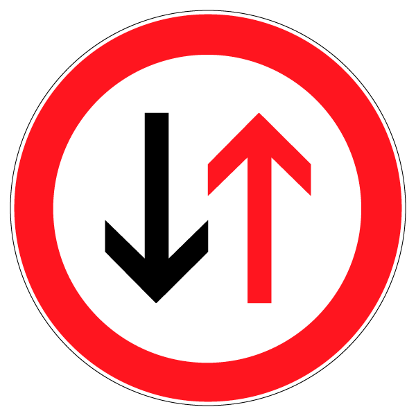 Označava suženi dio ceste na kojem vozila iz suprotnog smjera imaju prednost prolaska. Znakovi se postavljaju ispred suženog dijela ceste. Za vozila iz suprotnog smjera ispred suženog dijela ceste mora biti postavljen znak »prednost prolaza prema vozilima iz suprotnog smjera« (C01).