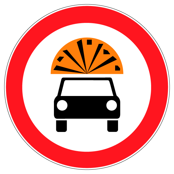 Označava cestu, odnosno dio ceste na kojem je zabranjen promet vozilima koja prevoze eksploziv i lako zapaljive tvari sukladno posebnom propisu.