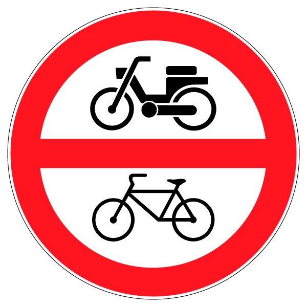 Označava cestu ili dio ceste na kojem je zabranjen promet za mopede i bicikliste.