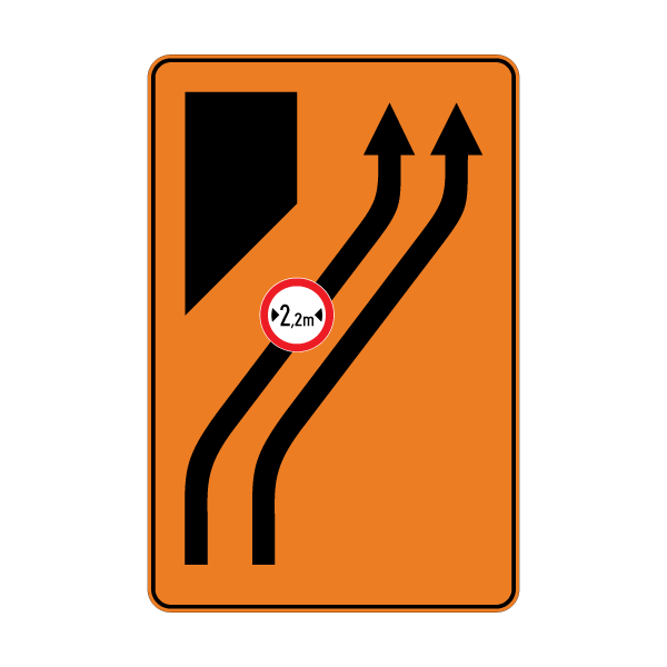 Obavješćuju i označavaju smjer te način preusmjeravanja prometa prilikom privremenih regulacija prometa. Znakovi su narančaste boje najmanjeg koeficijenta retrorefleksije razreda RA2. Simboli na znakovima moraju odgovarati stvarnom broju prometnih traka i načinu prestrojavanju na njima. Znak se postavlja na minimalnoj udaljenosti od 200 m prije mjesta preusmjeravanja prometa.
