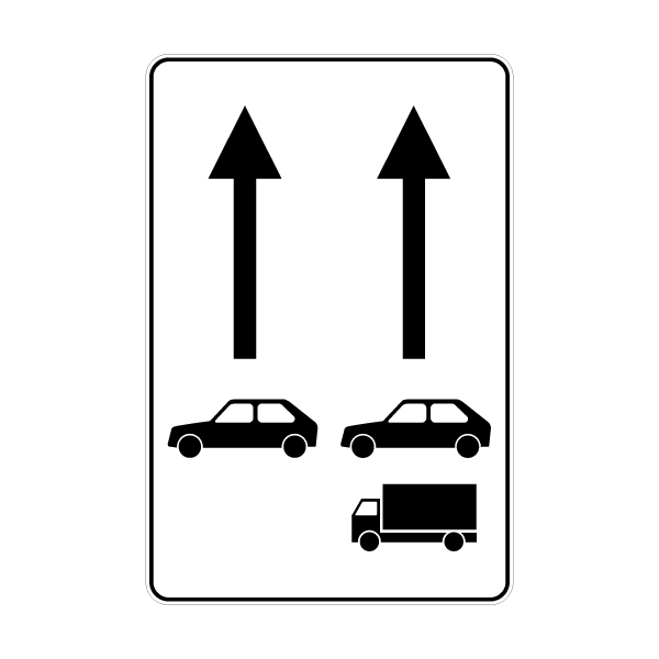 Označavaju broj i namjenu prometne trake, kad je zbog održavanja propusne moći ceste u području izvođenja radova, kratkotrajnog ograničenja ili oštećenja kolnika, promet uređen na takav način da se prometne trake namjenjuju određenoj vrsti vozila. Simboli na znakovima moraju odgovarati stvarnom broju prometnih traka i načinu prestrojavanja na njima. Kada se postavlja kod privremenih regulacija prometa, znak je narančaste boje najmanjeg koeficijenta retrorefleksije razreda RA2.