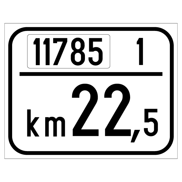 Označavaju kategoriju, broj, dionicu te kilometar javne ceste na kojoj je znak postavljen. Znak C115 označava oznaku dionice državne ceste, znak C115-1 županijske ceste, a znak C115-2 lokalne ceste. Znakovi imaju dva lica, a boja obje podloge je bijele boje. Znakovi se u pravilu, postavljaju s desne strane kolnika u smjeru vožnje.