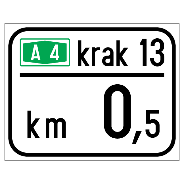Označava broj kraka čvorišta autoceste ili brze ceste te kilometar kraka čvorišta autoceste ili brze ceste na kojem je znak postavljen. Znak se, u pravilu, postavlja s desne strane kolnika u smjeru vožnje.