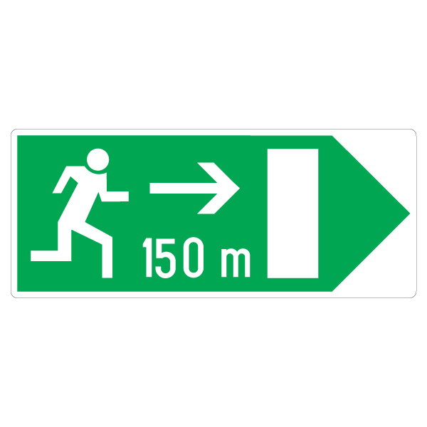 Označava smjer prema najbližim sigurnosnim izlazima na bočnim zidovima tunela. Dva najbliža puta za slučaj nužde moraju biti na bočnim zidovima označena znakom »smjer za izlaz u nuždi« (C121), na međusobnim udaljenostima od najviše 50 m, a na bočnom zidu na strani izlaza na udaljenosti od najviše 25 m i to s unutarnjom rasvjetom. Ukoliko je udaljenost postavljanja znaka s unutarnjom rasvjetom veća od 25 m, između dva takva znaka postavlja se znak izveden fotolumiscentnom folijom, koja emitira svjetlost u mraku najmanje 3 sata nakon nestanka rasvjete. Znakovi se na bočnim zidovima postavljaju na istim stacionažama.