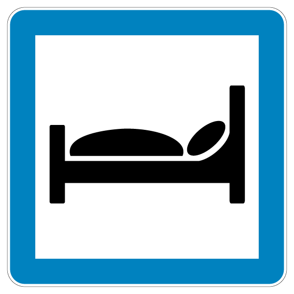 Označava blizinu mjesta ili mjesto na kojem se nalazi hotel, hostel ili motel.