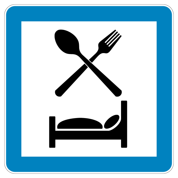 Označavaju blizinu mjesta ili mjesto na kojem se nalazi restoran (C45) ili prehrambeno-smještajni objekt (C45-1).