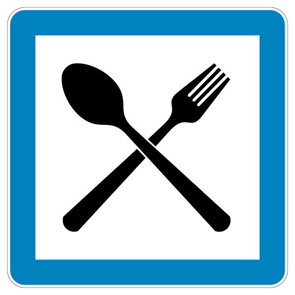 Označavaju blizinu mjesta ili mjesto na kojem se nalazi restoran (C45) ili prehrambeno-smještajni objekt (C45-1).