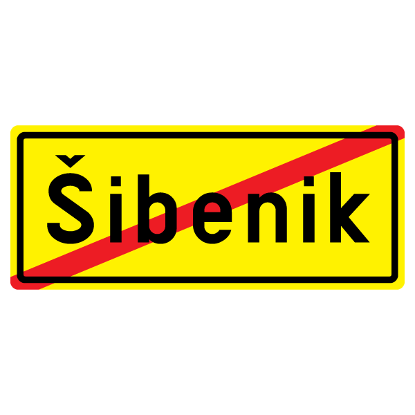 Označava mjesto na kojem završava naselje kroz koje prolazi cesta. Znak se postavlja na mjestu završetka naselja i označava od kojeg se mjesta prestaju primjenjivati prometni propisi u naselju.