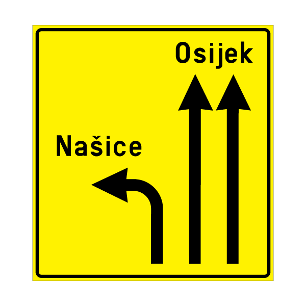 Označavaju mjesto prestrojavanja vozila na raskrižju cesta s više prometnih traka. Simboli na znakovima moraju odgovarati stvarnom broju prometnih traka i načinu prestrojavanju na njima. Na znaku C83-1 mogu biti ispisana najviše dva naziva odredišta za jedan smjer koji su ispisani jedan ispod drugoga te oznaka ceste. Znak C83-1 postavljen na autocesti zelene je boje, na brzim cestama plave boje, a na ostalim cestama je žute boje.