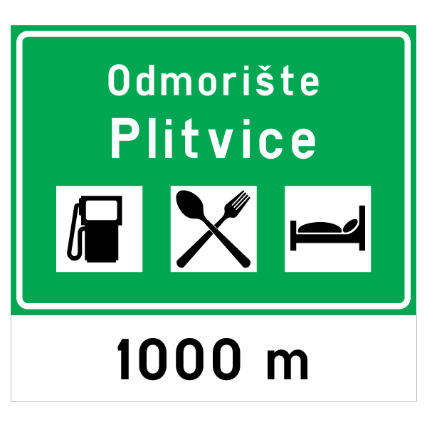 Označavaju nailazak na mjesto na kojem se nalazi odmorišna postaja s uslužnim sadržajima i prostor za odmor putnika. Na znaku su simboli sadržaja odmorišne postaje i udaljenost do odmorišta (C93), odnosno do iduće benzinske postaje (C93-1) te strelica za označavanje prometnog traka za isključivanje (C93-2). Znak postavljen na autocesti zelene je boje, na brzoj cesti plave boje, a na ostalim cestama žute boje. C93-2 postavlja se na početku prometnog traka za isključivanje.
