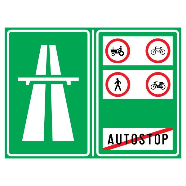 Označava kojim je vrstama vozila i sudionika u prometu zabranjeno kretanje autocestom ili brzom cestom. Kada se znak odnosi na brzu cestu, tada se umjesto znaka »autocesta« (C64), sadrži znak »cesta namijenjena isključivo za promet motornih vozila ili brza cesta« (C66) i plave je boje.