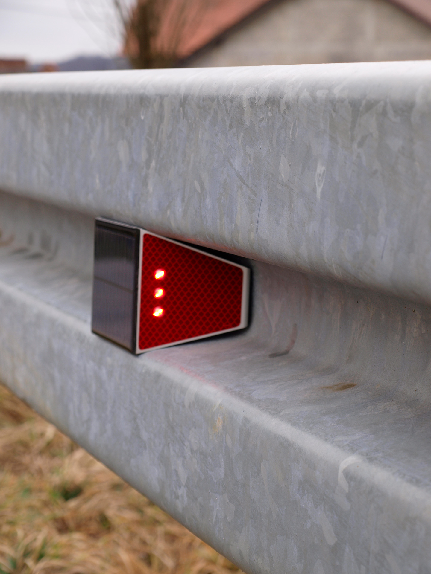 Solarni svjetlosni LED marker za cestovnu odbojnu ogradu elektronički je uređaj izrađen u tehnologiji svjetlećih LED dioda sa solarnim napajanjem. Zadržava postojeća svojstva dosadašnjih rješenja obilježavanja cestovnih čeličnih ograda, prilikom čega upotrebom nove tehnologije pridonosi u velikoj mjeri poboljšanju sigurnosti cestovnog prometa.Svjetlosni LED marker postavlja se na odbojnu ogradu na cestama, a prema potrebi može se aplicirati i na druge objekte uz cestu.