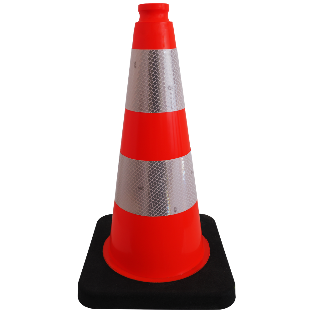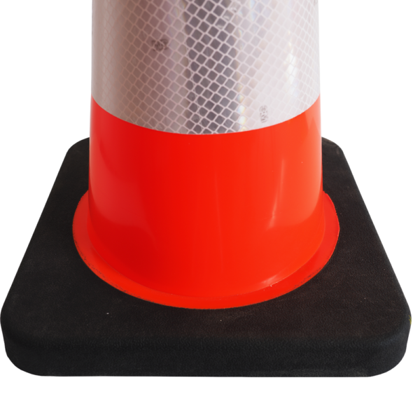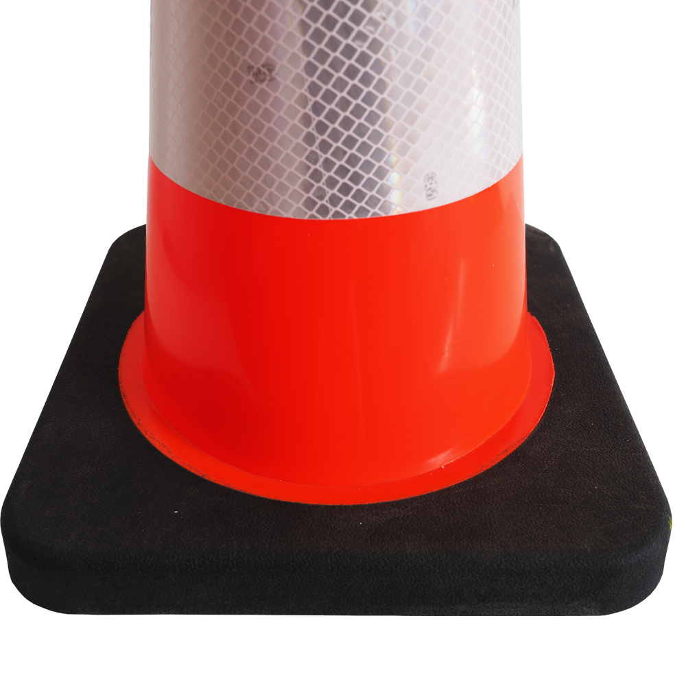 Stožac gumenog čunja izrađen je od fluorescentnog PVC-a narančaste boje, dok je postolje izrađeno od recikliranog PVC-a crne boje. Stožac i postolje su povezani u jednu cjelinu, što omogućuje iznimnu otpornost na udarce i gaženje.