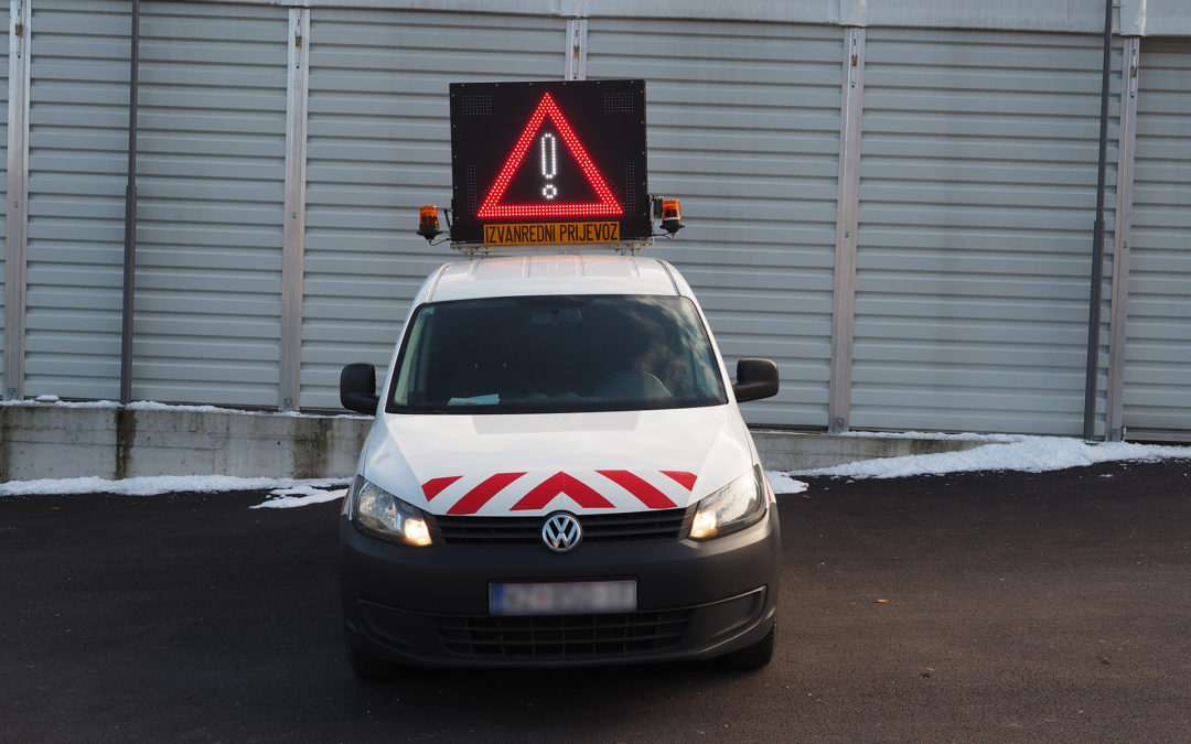 Zahtjevna pratnja izvarednog prijevoza Izrada i postava svjetlosne signalne ploče Ovaj projekt je obuhvaćao izradu i postavu svjetlosne signalne ploče te označavanje vozila crveno bijelom reflektirajućom trakom. U sklopu realizacije projekta, vozilo smo također...