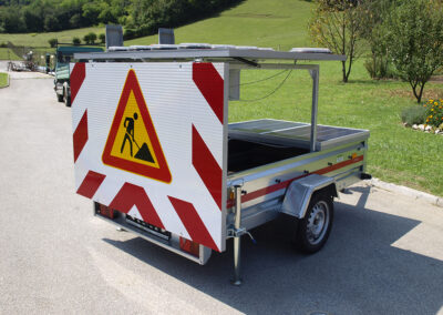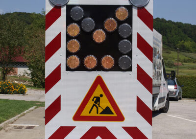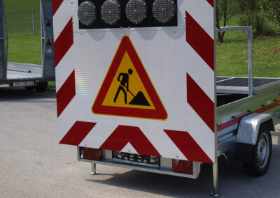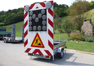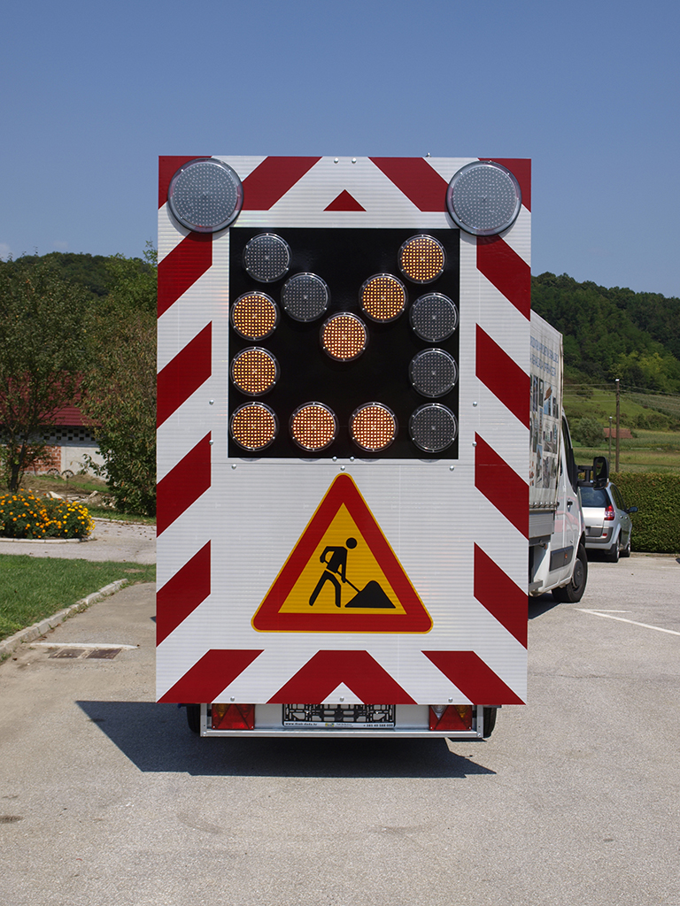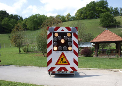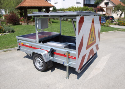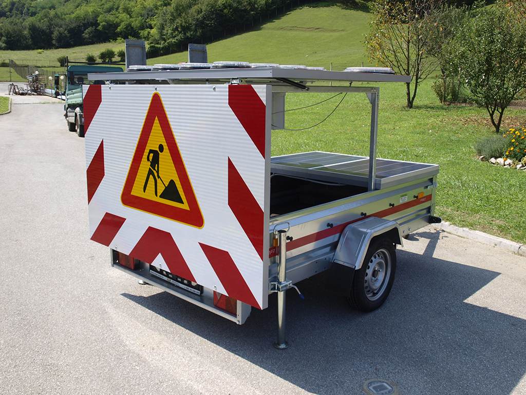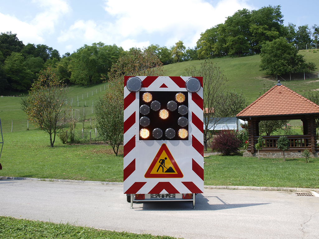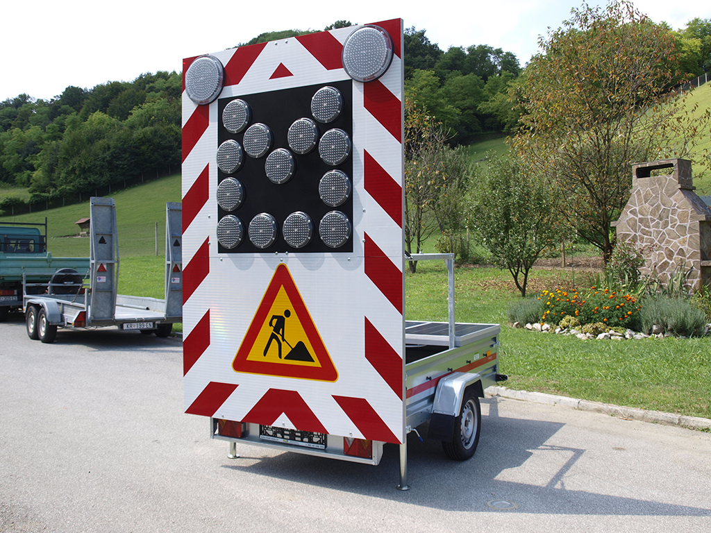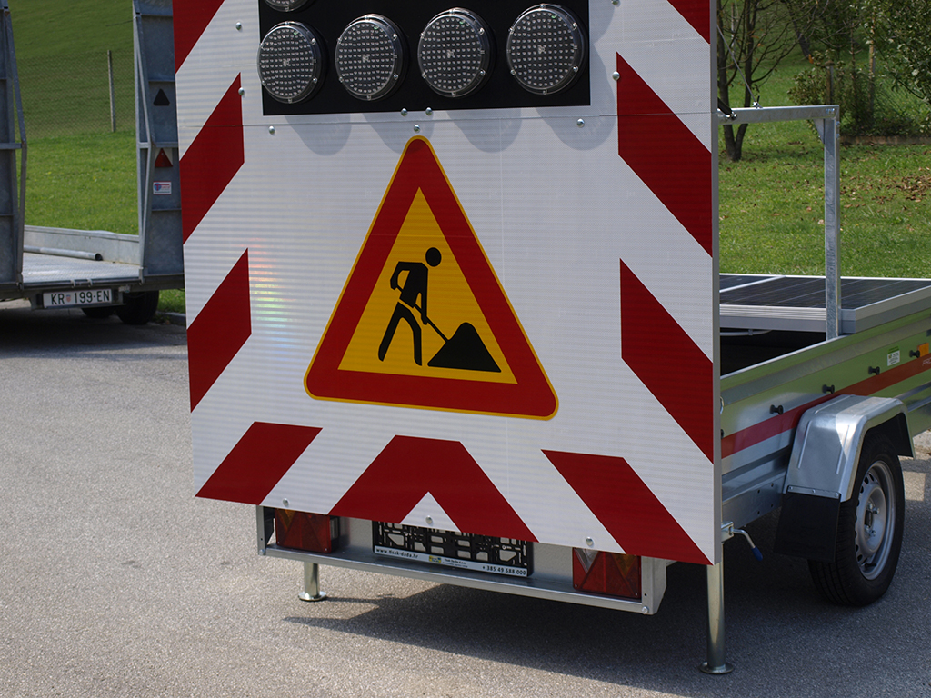 LED solarna signalna prikolica K24 (panel) sa treptačima i znakom samostalna je signalna jedinica koja služi za označivanje mjesta izvođenja radova, oštećenja na cesti ili pravovremenog informiranja sudionika u prometu na zatvoren prometni trak prilikom čega se vrši preusmjeravanje prometa.